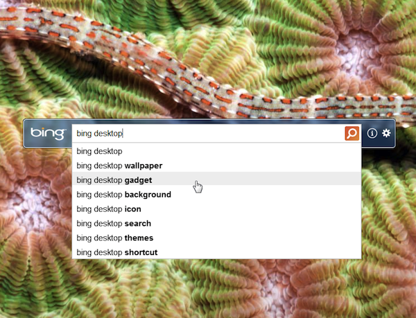 Bing Desktop is an utility that allows you to access the Bing search without even launching your web browser. Bing Desktop is a toolbar released by Microsoft that will download the Bing wallpaper and set it as your desktop wallpaper. Bing toolbar can be launched using a shortcut key (windows key + H), that lets you to perform Bing search instantly. It can auto-complete your search queries – just like the search box on the Bing website – and launches your default web browser for displaying the results. The utility is compatible with Windows 7.