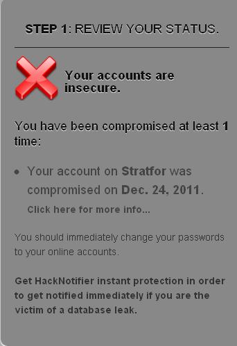 Hack notifier protection plan