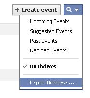 3. In the birthday page, again click the drop down menu and select “Export Birthdays…”.