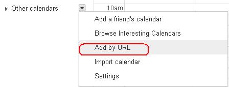 5. Now, log in to your Google calendar account and click “Other Calendars” from the left side menu and select “Add by URL”.