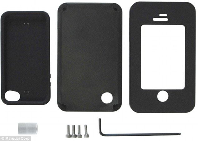 Recently I saw a video “iPhone Vs Gun” on Youtube (scroll down for the video), which shows a marksmen shooting an iPhone to see what happens to it. Probably this popular video would have inspired the Japanese company Marudai, who unveiled a new bulletproof case for your iPhone 4. According to the reports from reliable sources, the cost of the case is expected to be $650 and claims it completely bulletproof. The case come with an inch thick slab of steel plating that can resist .50 caliber round. The iPhone is first placed inside the case and bolted with screws. The front of the camera is protected by a layer of aluminum and the back of the case is protected with a heavy-duty steel, and has a hole for the camera lens drilled in.