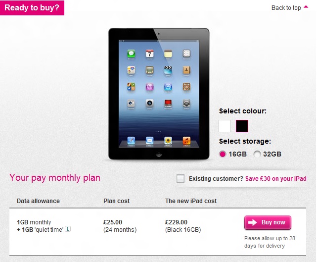 Buy iPad from T-mobile UK website