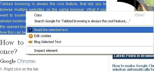 3. Go to any website where you would like to read out all the text. Highlight the text, right click and choose “Read the selected text”.