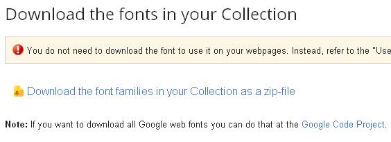 5. Click the “Download your Collection link” in the top-right hand corner of the page. In the pop-up that follows, click on “Download the font families in your Collection as a ZIP file”.