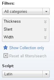 2. Choose the filters available on the left side of the page. This allows you to filter the fonts based on Serif, San-Serif and Handwriting. You can also filter the fonts based on its thickness, width and slant.