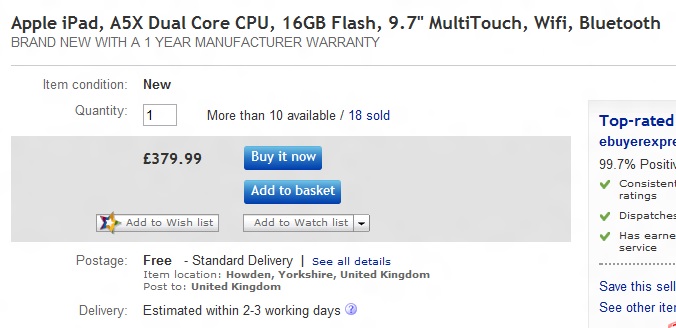 Ebay sells iPad for a cheaper price in UK: £20 lesser