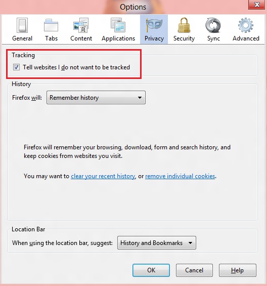 3. Under the “Privacy” tab, check “Tell websites I do not want to be tracked” and click “Ok”