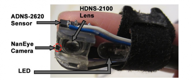 Just attaching a small ring to your finger can turn any surface into a touch interface and that can let you control your smartphone or a computer. This prototype device is jointly developed by Autodesk Research, the University of Alberta and the University of Toronto. The device consists of two sensors, low resolution, high speed sensor that tracks movement. The Magic Finger features a high resolution camera that helps to detect 32 different surfaces textures that too at a accuracy of 98%.
