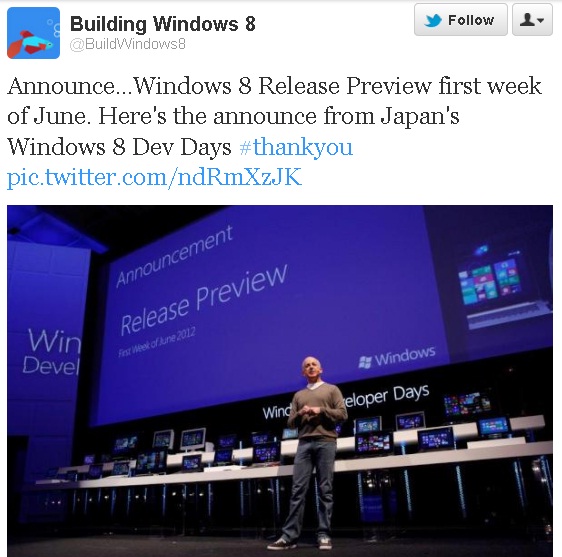 Microsoft has geared up to release Windows 8 “Release Preview” in the first week of June. The announcement was made during the Japan’s Windows 8 Dev Days. According to the reports, the final version of Windows 8 is due in October 2012. Microsoft’s Windows 8 will be a big test for the company, which has attempted to provide unique operating system across various devices like Tablets, Smart Phones and PC. Few months back Microsoft released “Windows 8 Developer Preview” for the desktops, which seems to be more suitable for the tablets than the desktops. According the reviews from CNET, the site claims that “Windows 8 is the most integrated and most capable operating system Microsoft has ever put out”.