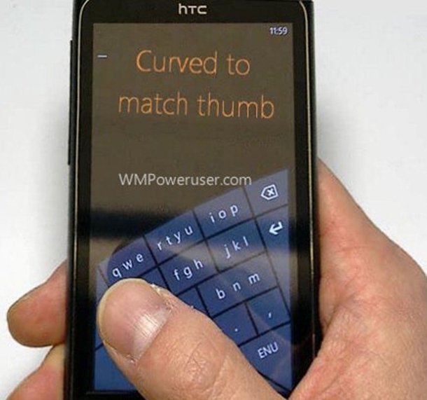 Microsoft’s research team is working on a concept keyboard to fit your thumb and can be used with one hand. The leaked pictures of the HTC mobile featuring Windows 8 shows this curvy keyboard concept. The curvy keyboard feature was first seen during the Microsoft Research presentation. The keyboard has been designed to be curvy so that it can match with your thumb. It’s a QWERTY keyboard, but the individual characters sorted into distinct blocks.
