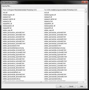 The next screen will display the files that are to be moved as a part of the application. Clicking “Ok” will confirm the relocation.