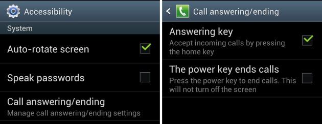 You can activate this feature by just tapping Settings > Accessibility > Call Answering/ending. Here “Check” the option “Accept incoming calls by pressing home key”.