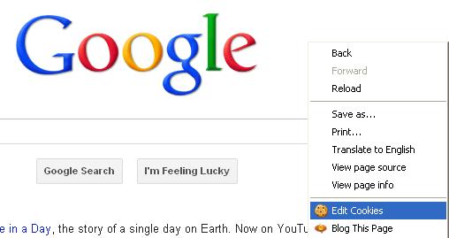 3. Right click anywhere on the page and click “Edit Cookies”. It should open up a tab where you can edit the cookies.