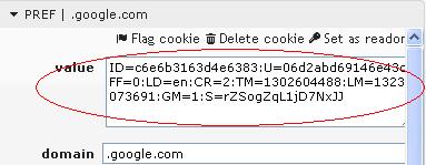 4. Select the PREF cookie.