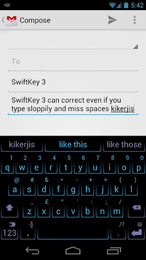 The keyboard has a dedicated key for comma, Android backup support that will allow you to preserve the databases of trained phrases. Swiftkey 3 will learn from your SMS, Tweets and email archives to know what words you use often.
