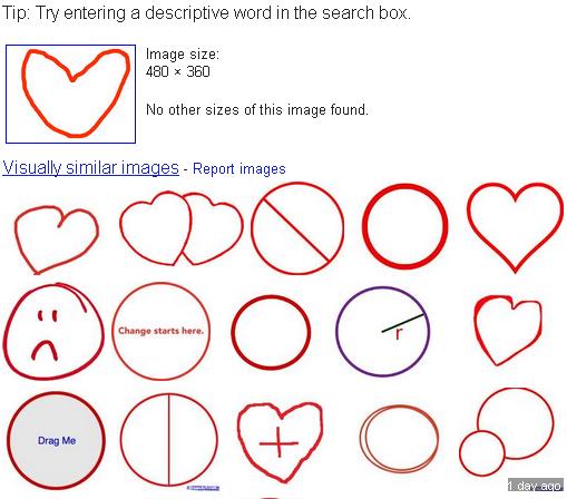 Does it work?: it might work fairly well for signs or symbols or simple line-type drawings. For more complex illustrations a text search may be the better option.